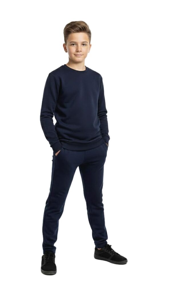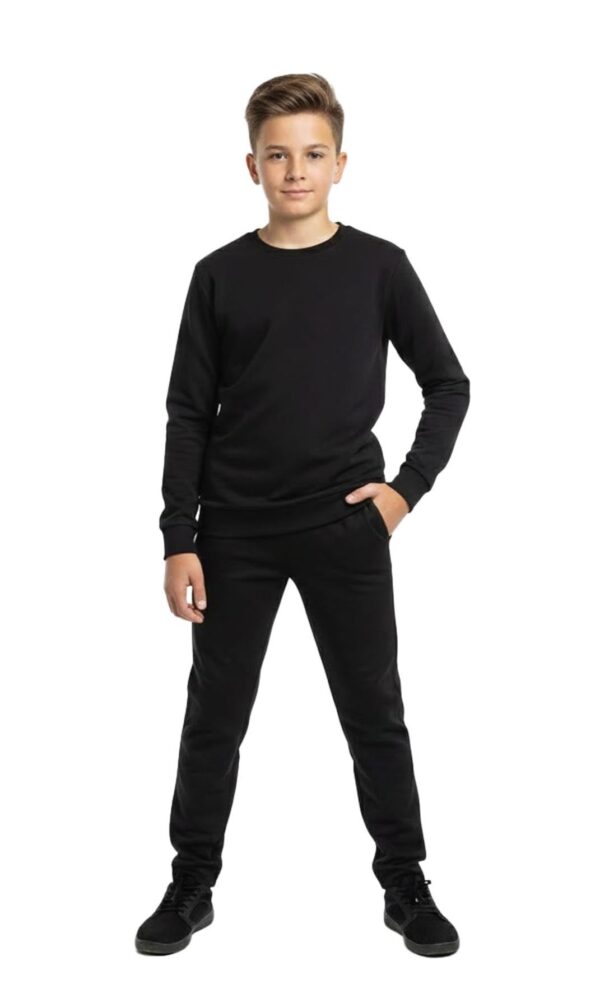 Comfortable and stylish boys tracksuit set with round neck sweatshirt and joggers. Perfect for gym, sports, school, and everyday casual wear for kids aged 5–13 years.