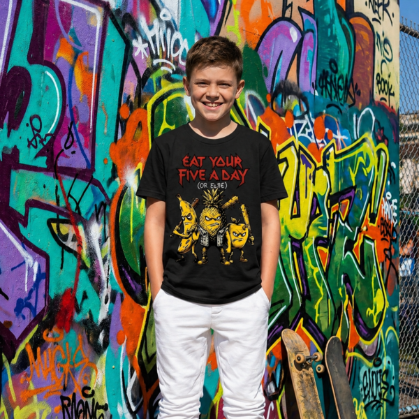 Funny Kids Eat Your Five A Day T-Shirt Print Cotton Tee Boys Girls Graphic Top UK Size